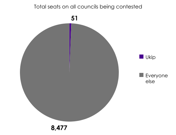 This wouldn’t matter quite so much were shire and county councils also going to the polls – areas with which Ukip can perhaps more easily identify and find sympathy. But they’re not. And this could mean that the number of council seats Ukip wins next week is way out of proportion with the support they appear to receive in the European elections held on the same day.