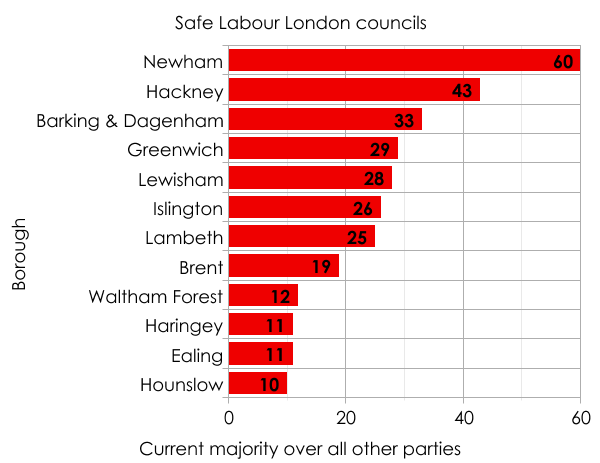 Newham, by the way, is a 60-seat council. Yes, that means every single seat is currently held by Labour. Regardless of your party preference, that can’t be good for democracy. Note also that not a single Tory currently sits on Newham, Islington or Haringey council.