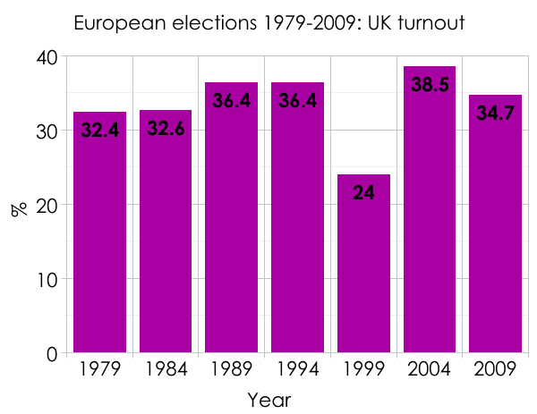 Whether he’ll be proved right is another matter. Here is the UK turnout in every European election dating back to the first such contest in 1979: