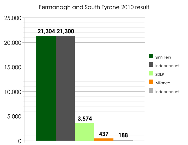 Equally significant would be a gain in Fermanagh and South Tyrone for a Unionist candidate, who might then be willing to vote with a Tory minority government.