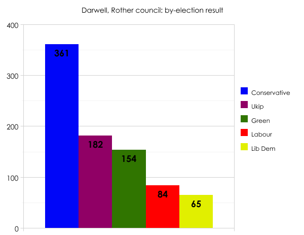 Finally, the Tories held a seat on Rother council, despite a 4.9% swing to the Greens: