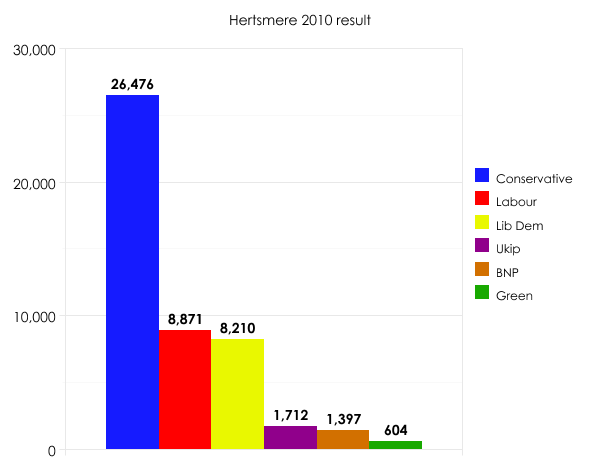Johnson would not have to work hard to win this seat. It is safe Conservative territory. Randall’s majority in 2010 was 11,216: