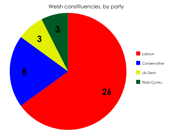 Labour has to be cautious in Wales. Of its 26 seats, 15 are marginals. That’s not to say many or indeed all are at risk, but it means their campaign will necessarily be as much about defence as attack. This situation was largely caused by the 2010 election, where the swing away from Labour turned a host of safe seats into less-safe ones. The party’s current standing in Wales is at odds with the myth of the nation being as dependable a heartland for them as Scotland or north-east England.