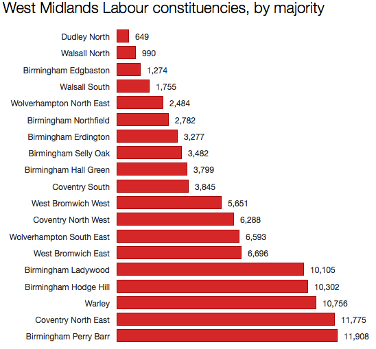 Labour dominates the West Midlands. But the 2010 election left the party with an awful lot of marginals in this region: