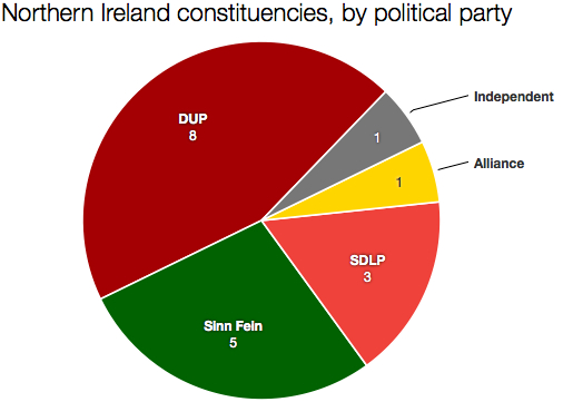 The 18 parliamentary seats in Northern Ireland are normally treated as a bit of an afterthought at a general election. They are not contested by any of the main British political parties, and are always the last to declare, their results tending to trickle in long after the polls are closed and when the identity of the new government is already known.