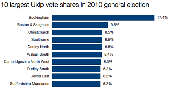 Boston & Skegness aside, the only other seats on that list which I believe Ukip is targeting heavily in 2015 are the two Dudley constituencies. Thanet South is nowhere to be seen on that list – nor any seats in the south-east, for that matter.