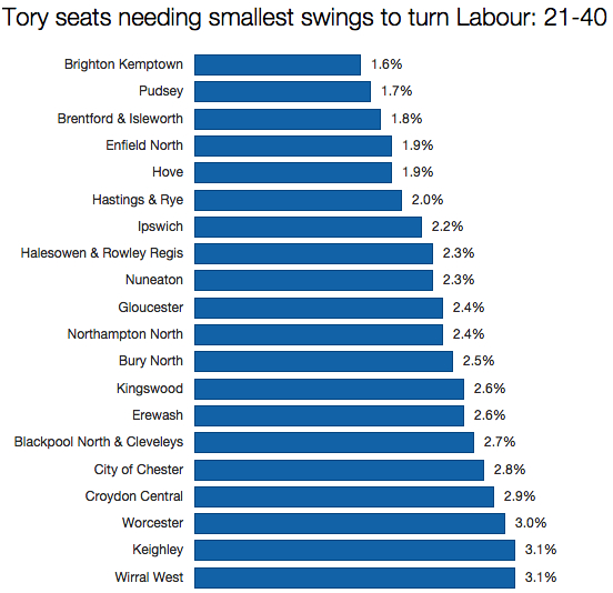 But rather than focus on the tightest races, he ventured a bit further down Labour’s target list and surveyed some of the constituencies needing swings of around 2-3% to change hands.