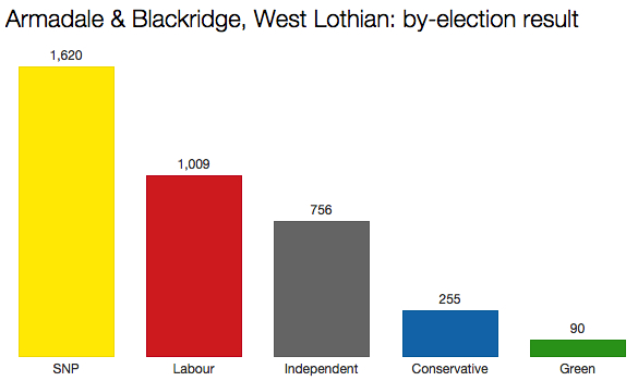 The nationalists’ third win was on West Lothian council, where they held a seat easily: